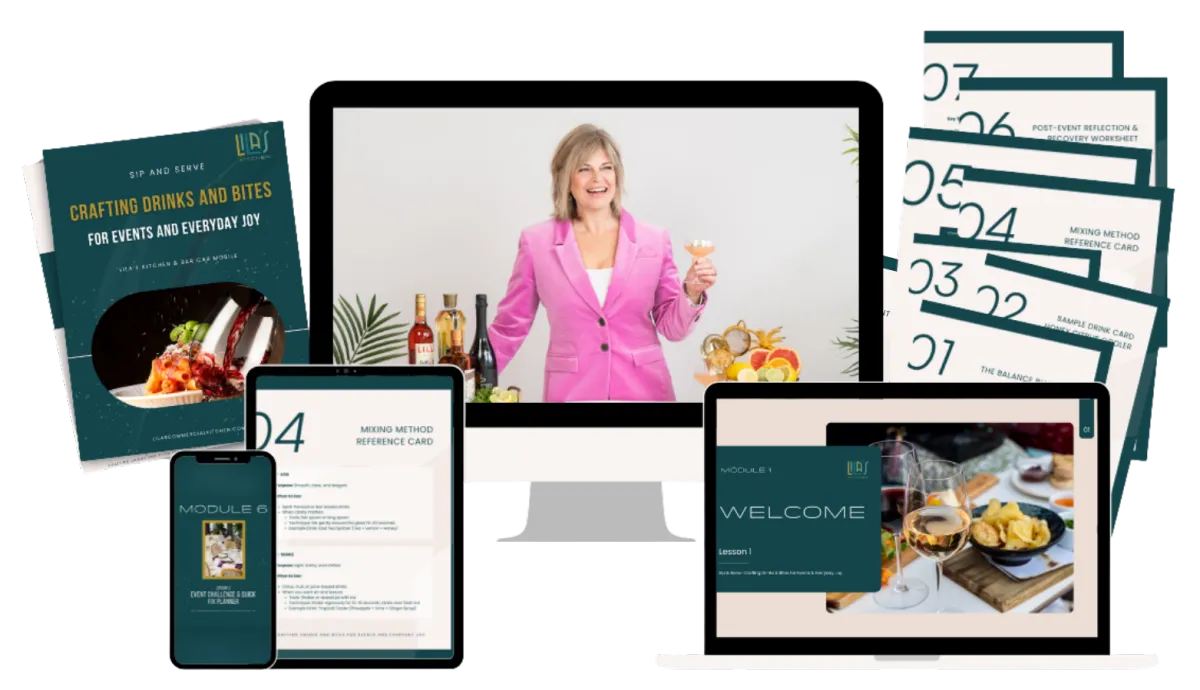 Stop second-guessing your hosting skills. Get instant access to the full 7-module masterclass covering the "Balance Blueprint" of mixology, professional snack pairing, event styling, and the mindset to handle any hosting challenge with grace. No more "kitchen stress"—just practical, professional skills you can use for a lifetime of joyful gatherings.